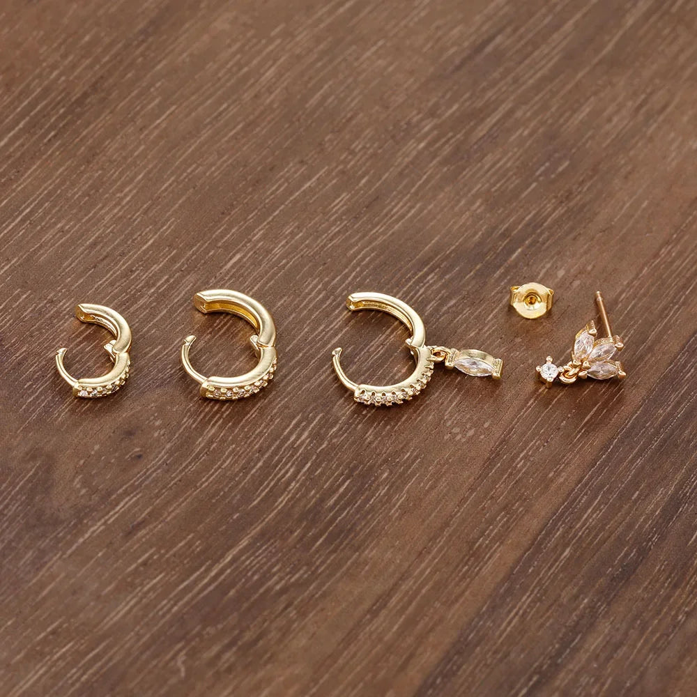 Add bold shine to your look with this 4-piece zircon hoop earring set, where water-drop silhouettes and gold-plated sparkle meet everyday versatility.