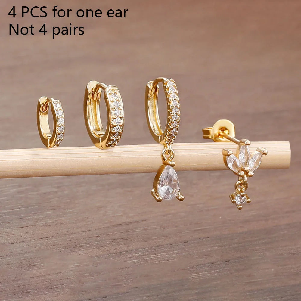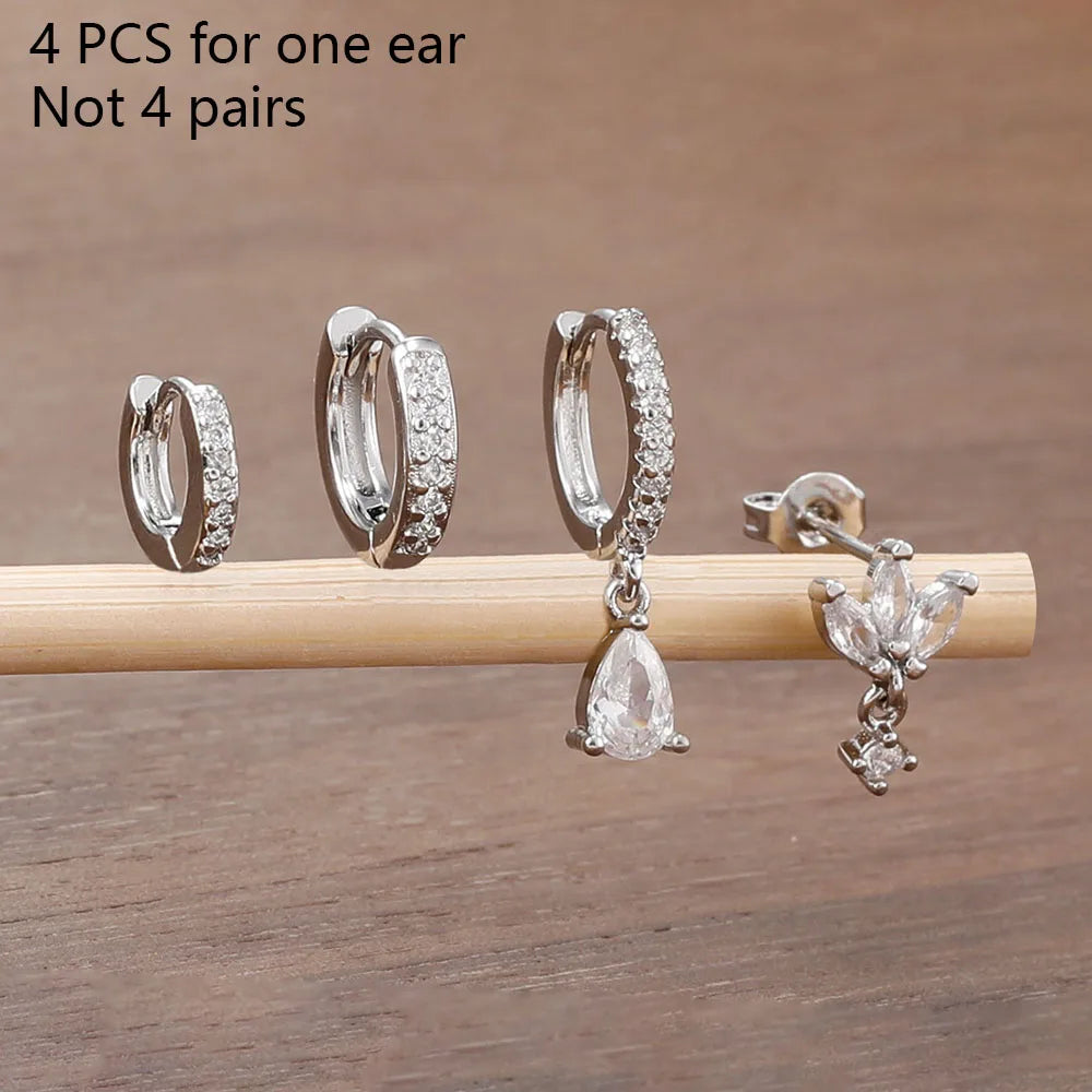 4PCS Exquisite Zircon Hoop Earrings Set for Women Stainless Steel Hoops Water Drop Shape Cartilage Earring Piercing Jewelry
