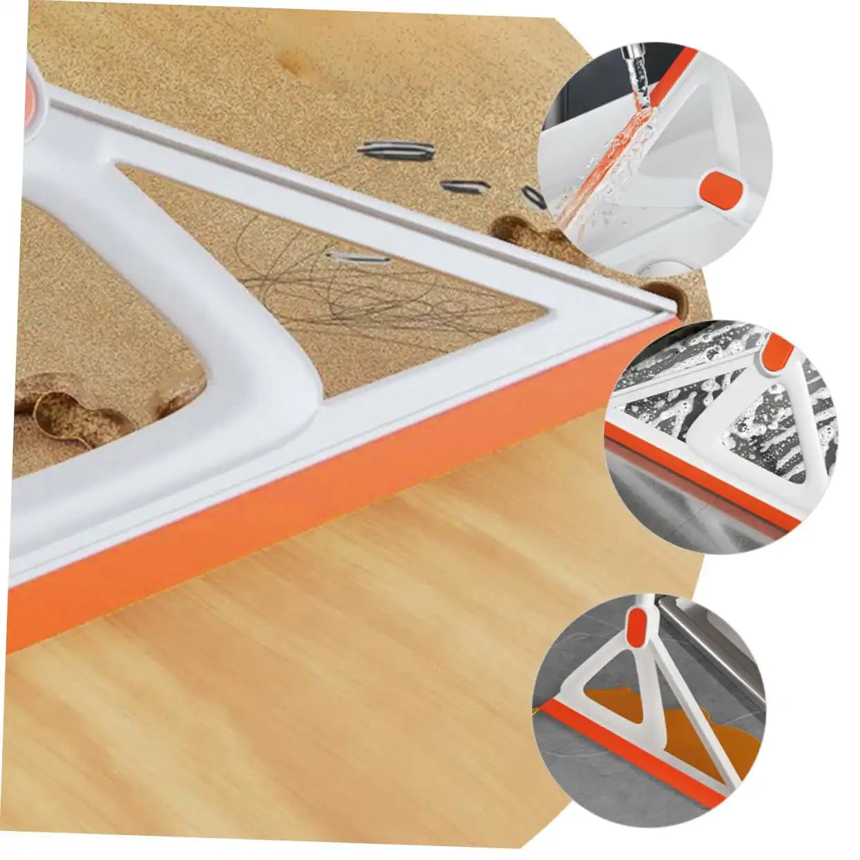 - Triangle frame with a V-shaped tip guards against dust dispersal and reaches tight corners; the detachable squeegee head makes window and basin cleaning a breeze.