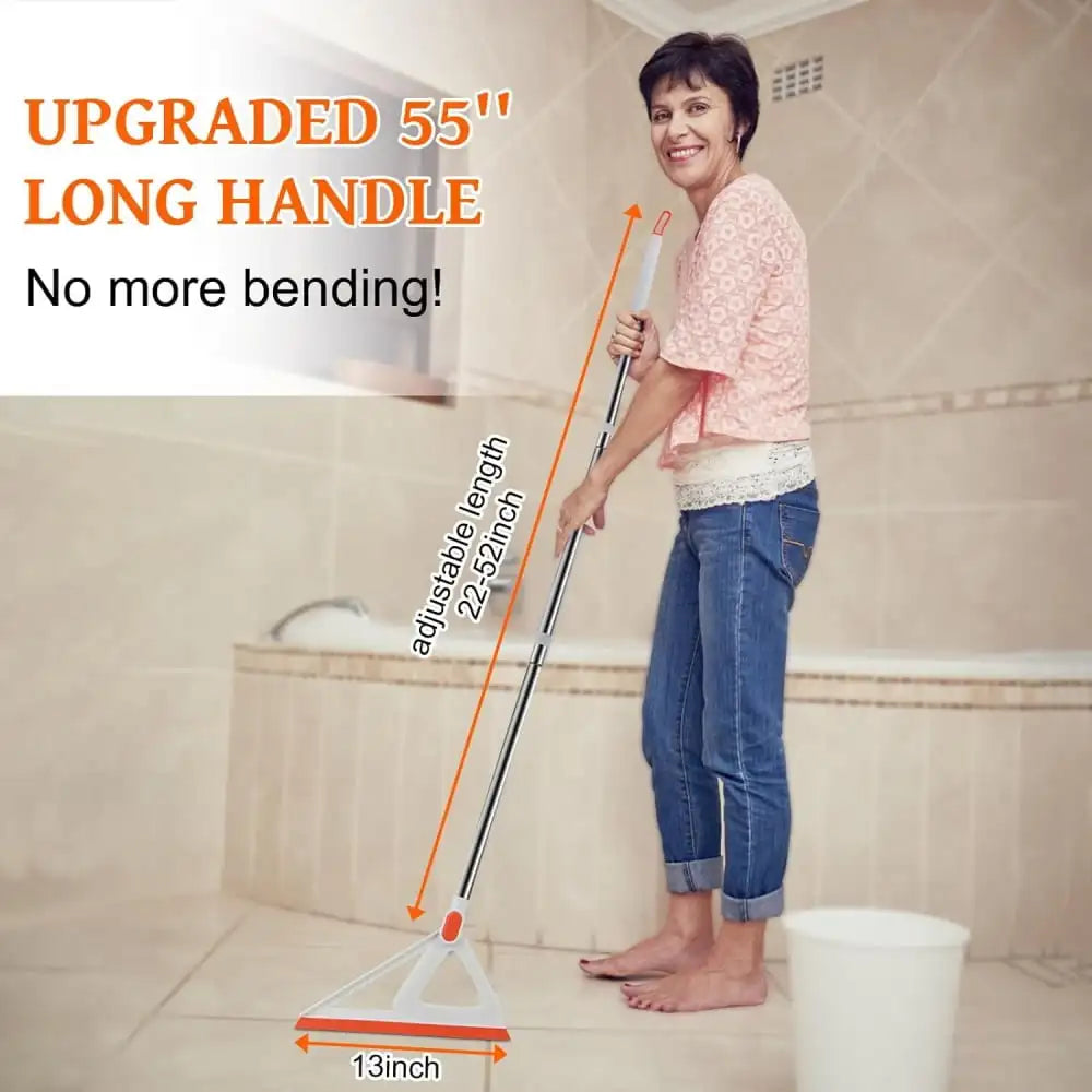 - Sweep and scrape with a silicone blade, dry or wet surfaces, tackling dust, debris, pet hair, sand, coffee granules, and even gooey messes on floors, tiles, glass, and shower walls.